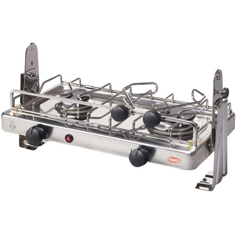 This lightweight, high-performance stove features one 8500Btu burner and one 6000Btu burner forefficient meal preparation. All-stainless steel construction for a durable, good-looking addition tocompact galleys. Safe thermocouple gas shut off controls and electronic ignition. Includes gimbalkit and two pot holders. Overall size: 9-3/4″H x 18-1/2″W x 13-3/8″D. Cutout size: 9-3/4″H x19-3/4″W x 17-3/4″D.