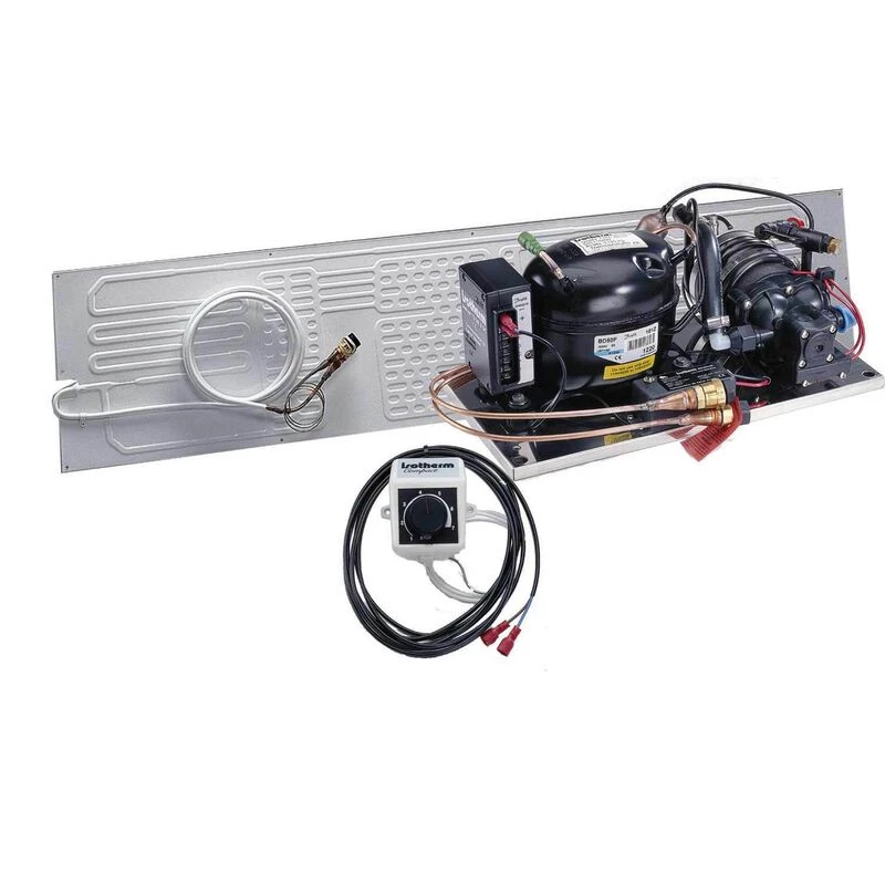 These ice box conversion kits come complete, pre-charged, and ready to install. Isotherm refrigeration kits use Danfoss/SeCOP compressors to cool an evaporator or holding plate fitted in the refrigerator or deep freezer box. This unit uses seawater cooling to efficiently remove heat from refrigerated foods. Isotherm ice box conversion kits come complete with compressor, evaporator, thermostat and mounting bracket or plate, and they are fully charged with quick-connect, self-sealing valves for easy installation.