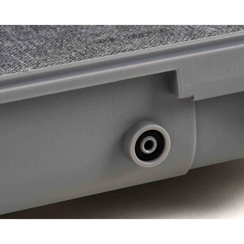 - Pass through on divider tray allows for charging during travel