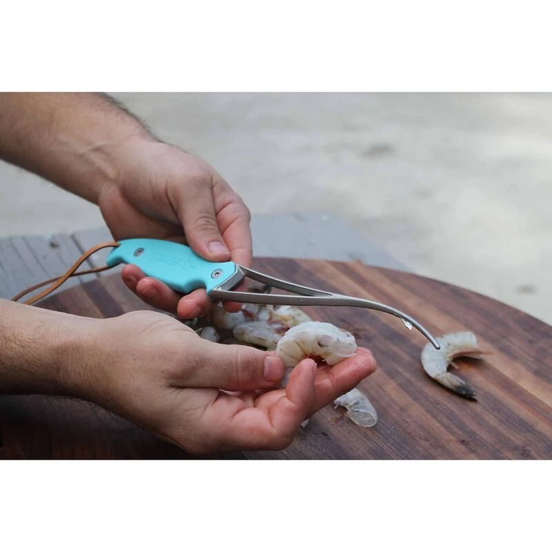 Introducing the Frogmore Shrimp cleaner. This first-of-its-kind shrimp tool that allows you to peel, devein, and butterfly shrimp in one single smooth motion. Elegantly designed and easy to use, it gives you a perfect shrimp every time.